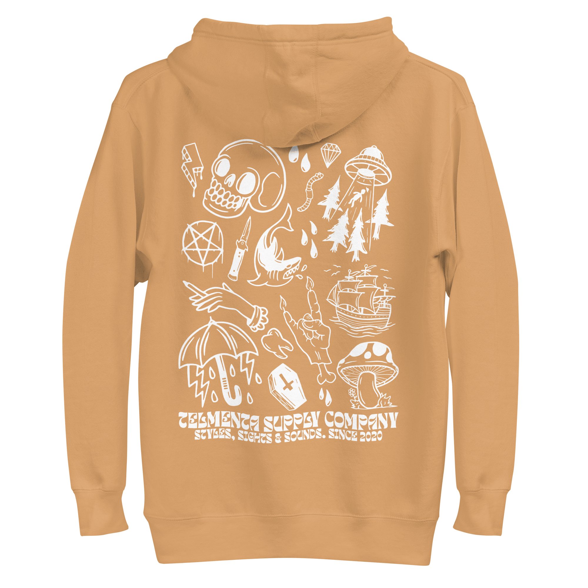 Back printed graphics on a premium all gender hoodie, in limited edition khaki color!