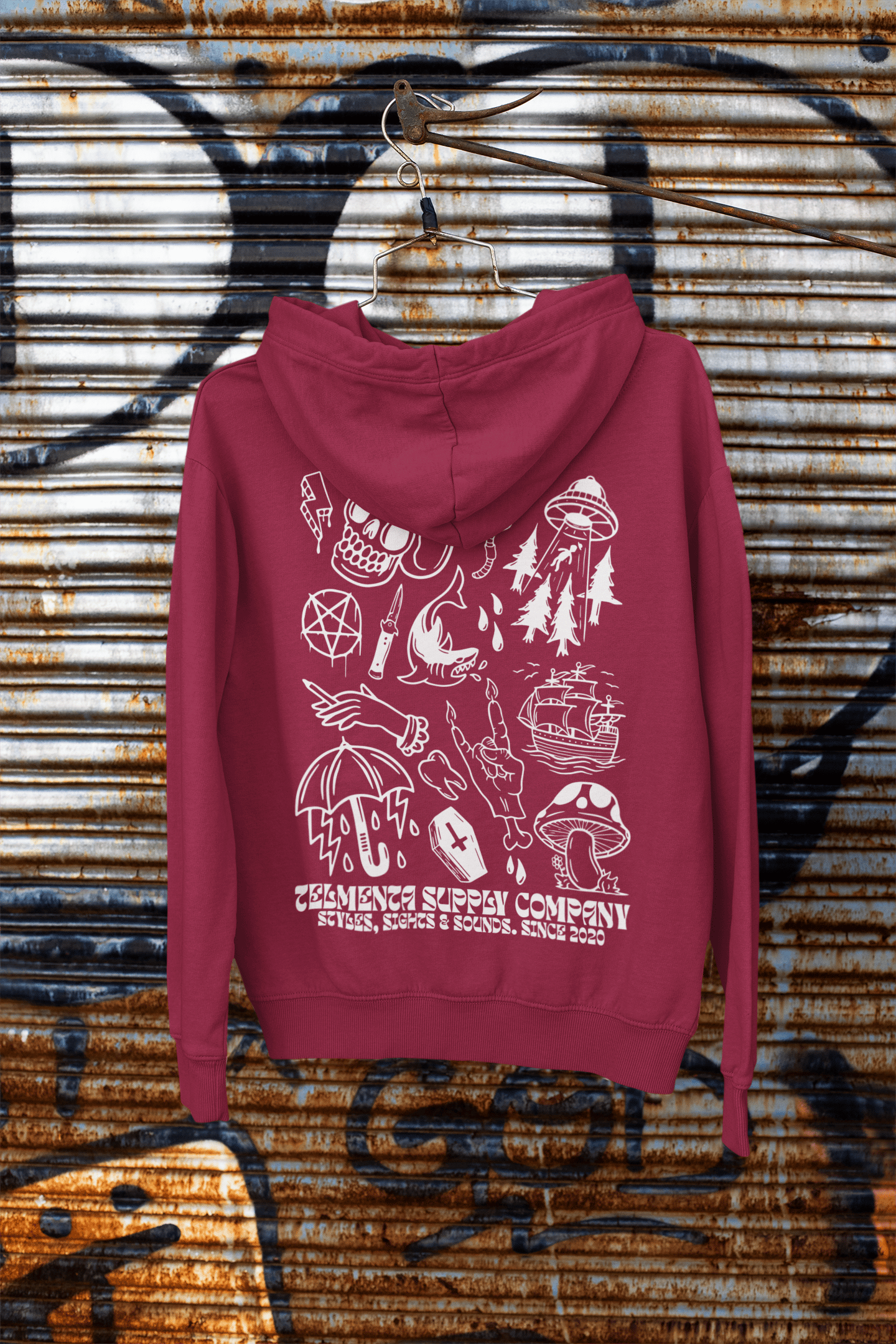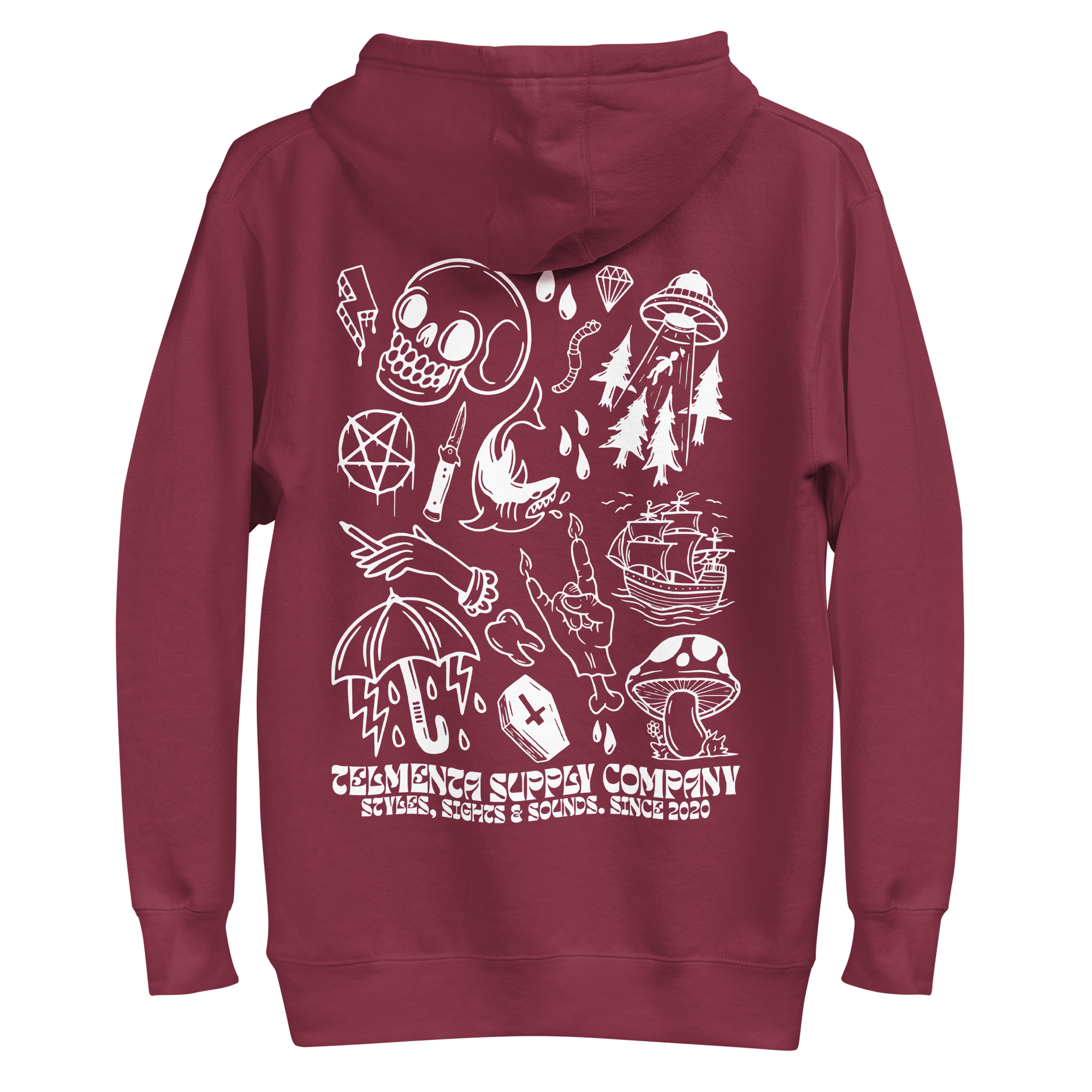 Back printed graphics on a premium all gender hoodie, in limited edition maroon color!