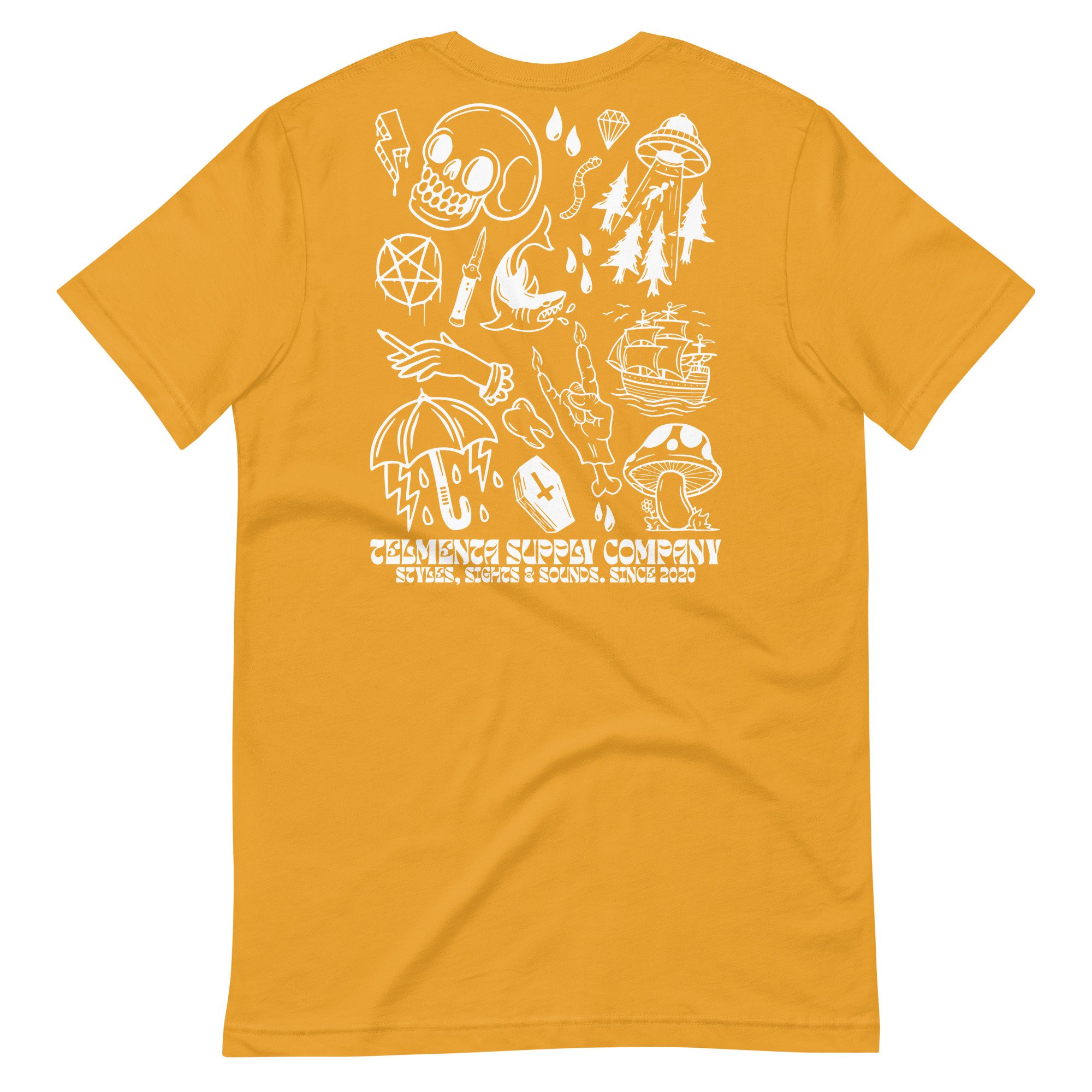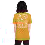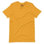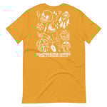 Back printed graphics on a premium all gender tee, in limited edition mustard color!