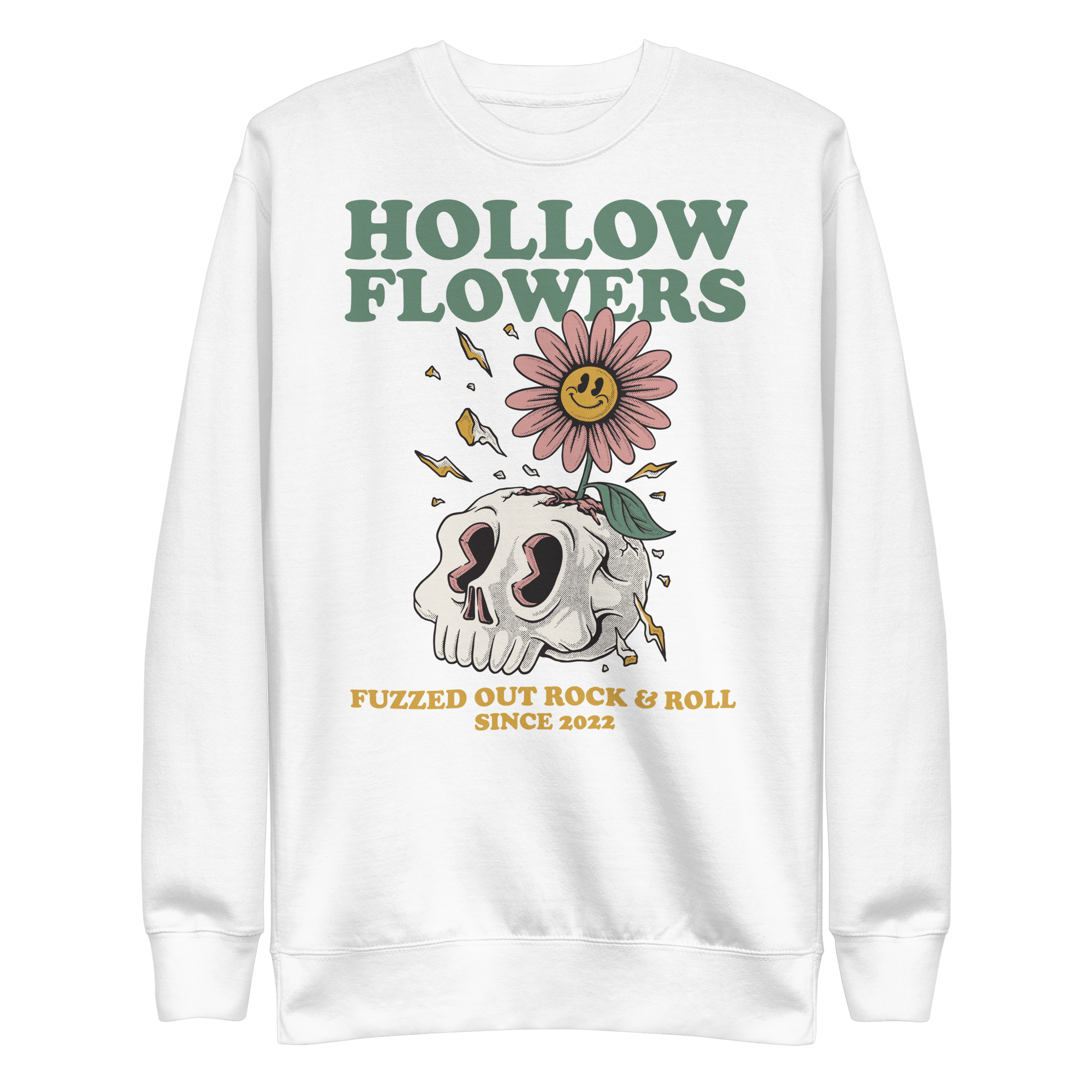 A premium all gender crewneck. Complete with Hollow Flowers graphics front and center! A copy of the band's brand new self-titled album comes with each order.